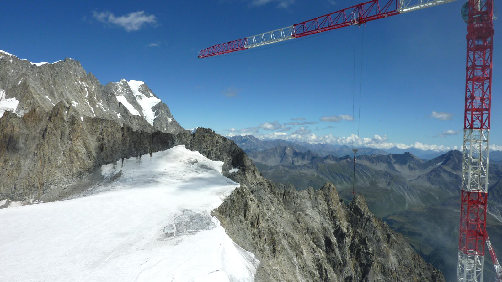 vue panoramique à partir de la Pointe d'Helbronner (3462m): les Grandes Jorasses (4206m), la Pointe Walker (4206m)