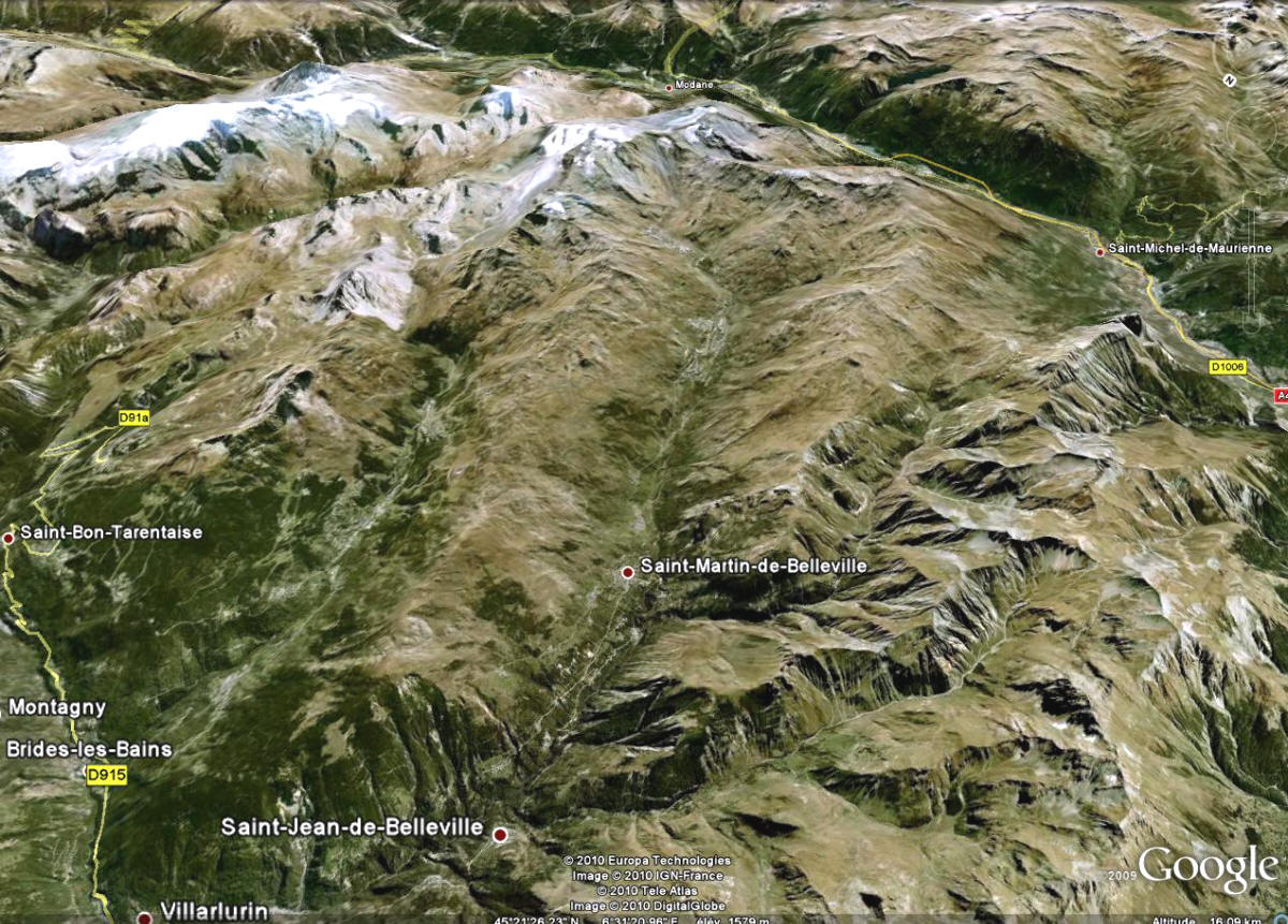 val thorens             le Parc National de la Vanoise : la vallée de Pralognan, Courchevel, Méribel, Les Ménuires et Val Thorens               (copyright Google Earth)