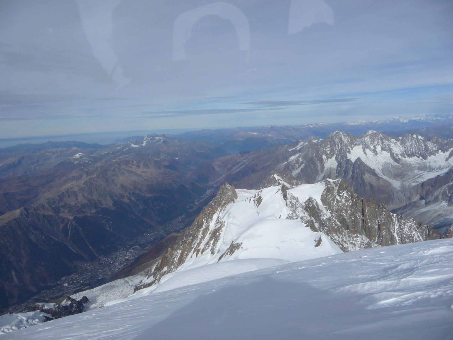 la Vallée de chamonix - le Massif des Aiguilles Rouges et l'Aiguille du Midi vus du Mont Blanc