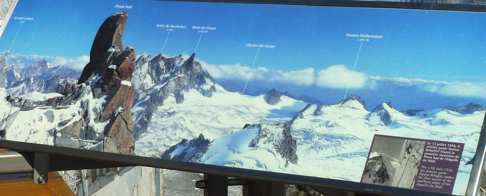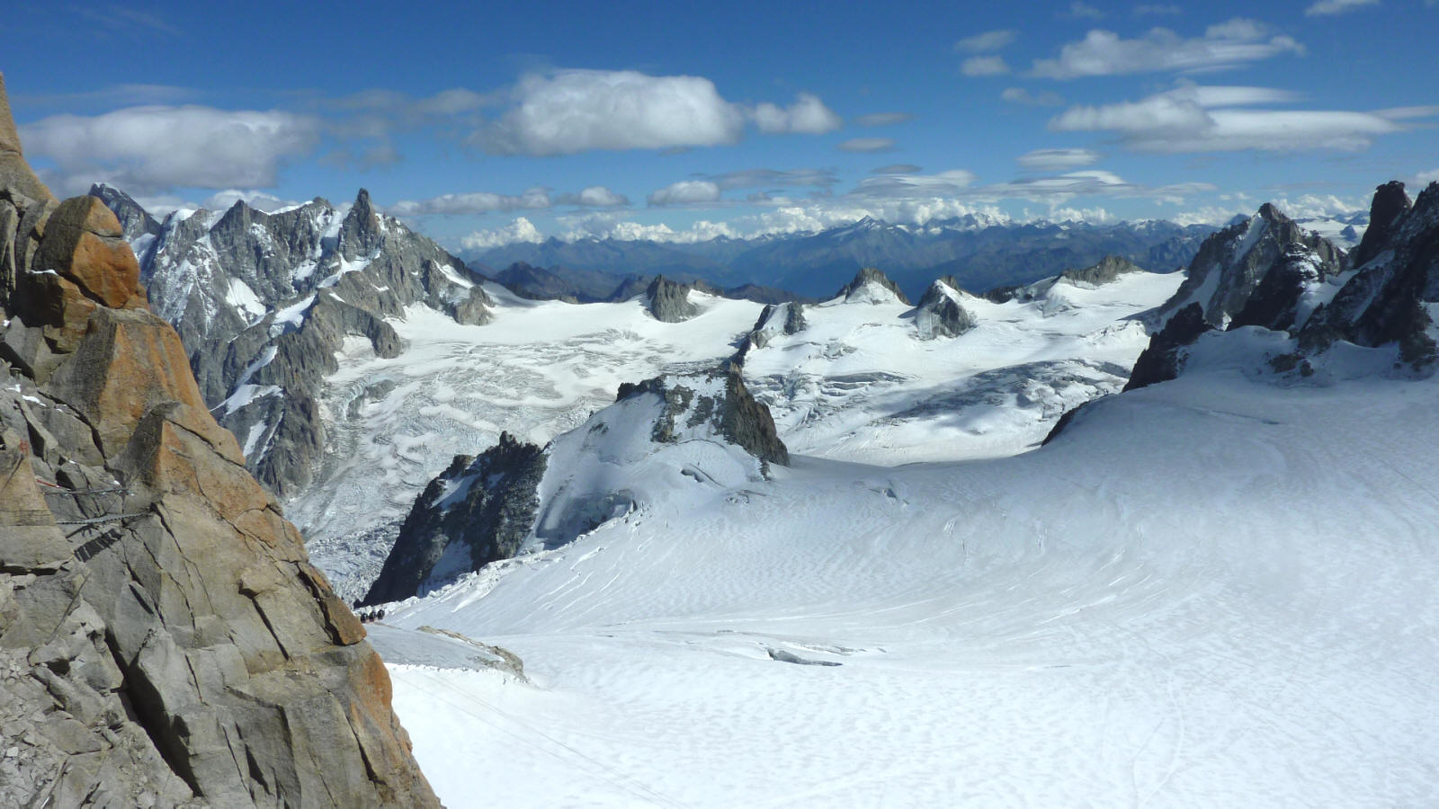 le Piton Sud - la Dent du Géant(4014m) - le Glacier du Géant - la Pointe d'Helbronner (3462m)