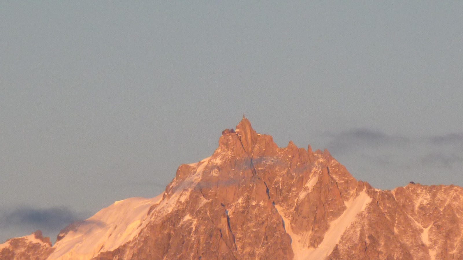 l'Aiguille du Midi (3842m)...photo prise de la terrasse d'un chalet à Cordon au couché du soleil