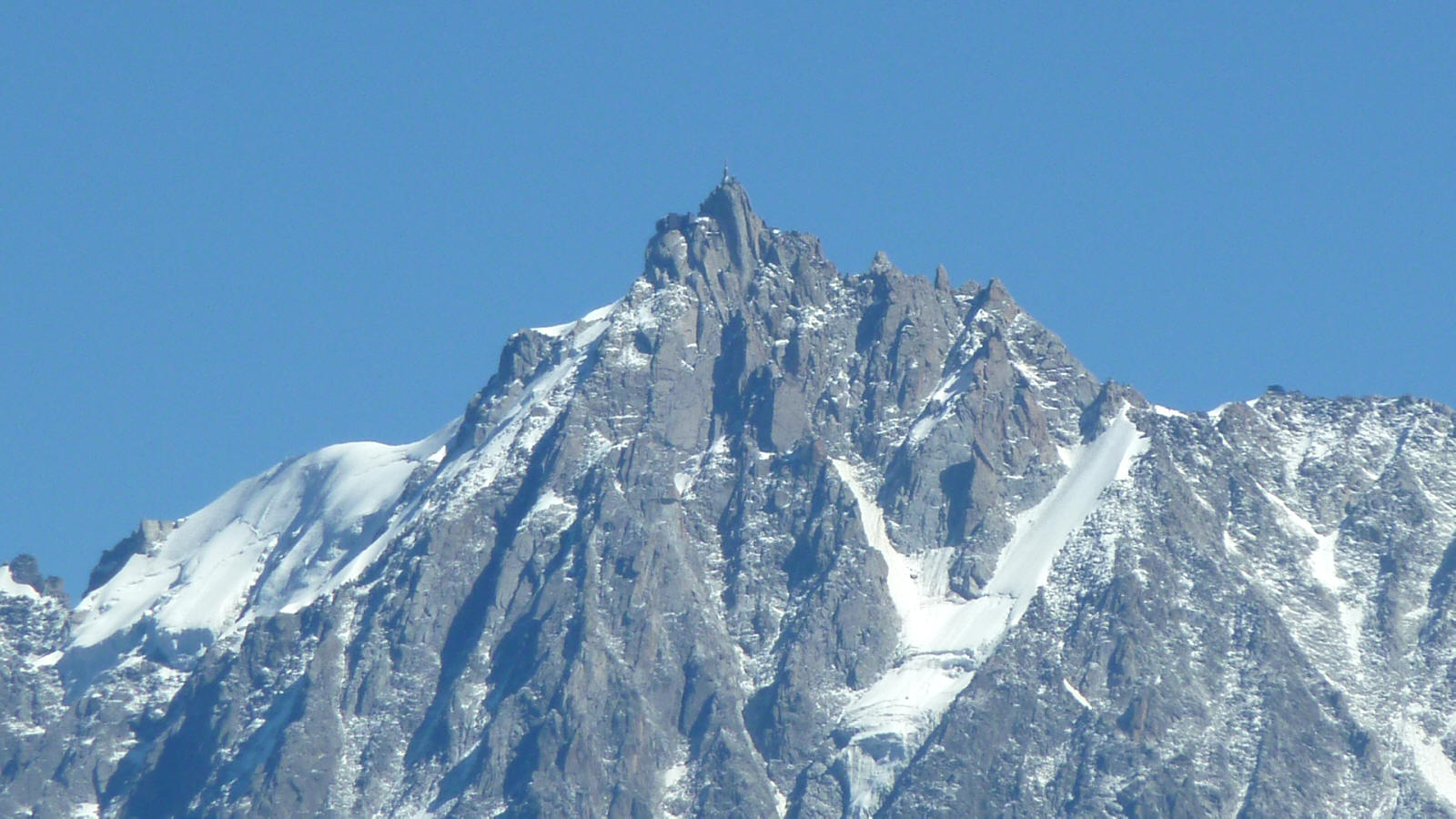 l'Aiguille du Midi (3842m)...photo prise de la terrasse d'un chalet à Cordon l'après-midi