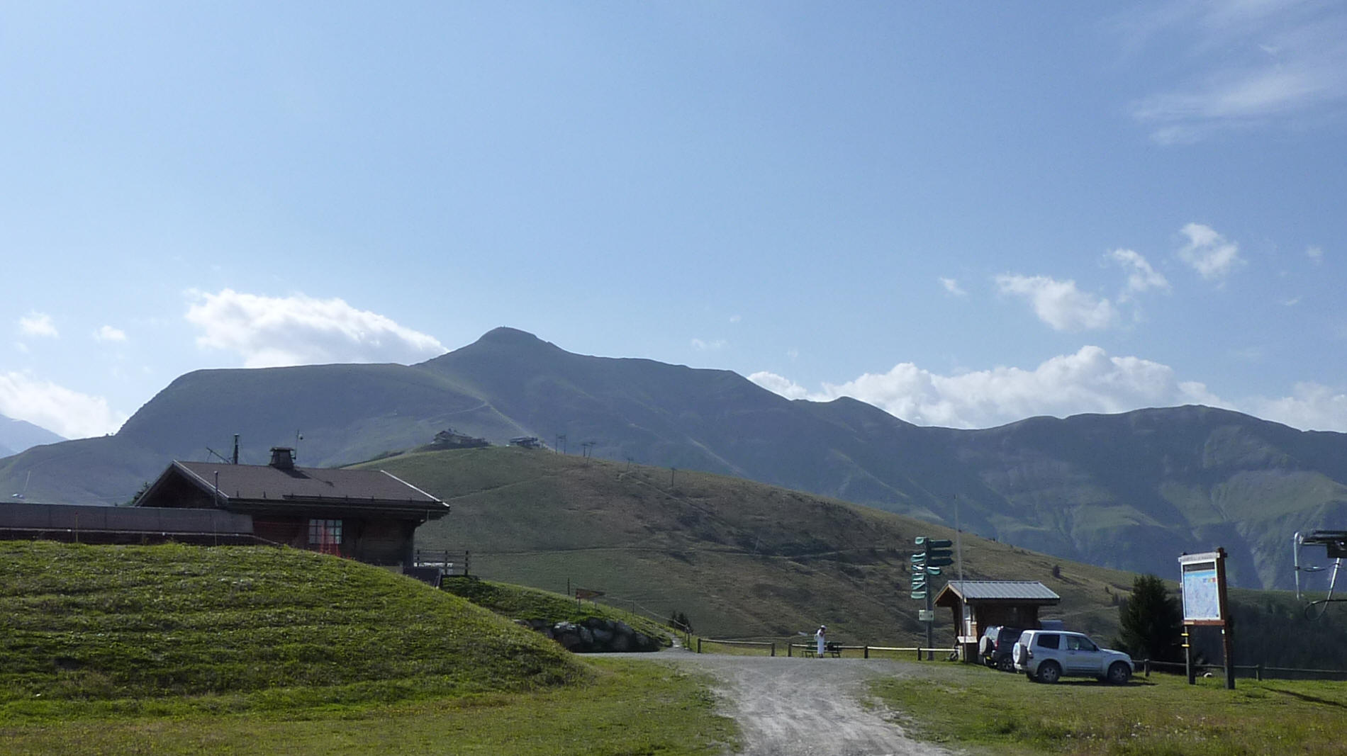 vue du Mont d'Arbois (1830m), le Mont Gréoux (2288m), le Mont Joly ( 2525m), la Tête de la Combaz (2445m) et la Tête du Véleray (2452m)