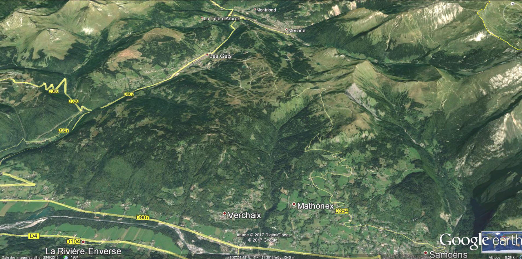 les Gets (1200m en moyenne - 1260 habitants) situés dans le massif du Chablais (maj : 12/09/2017 - copyright Google Earth)