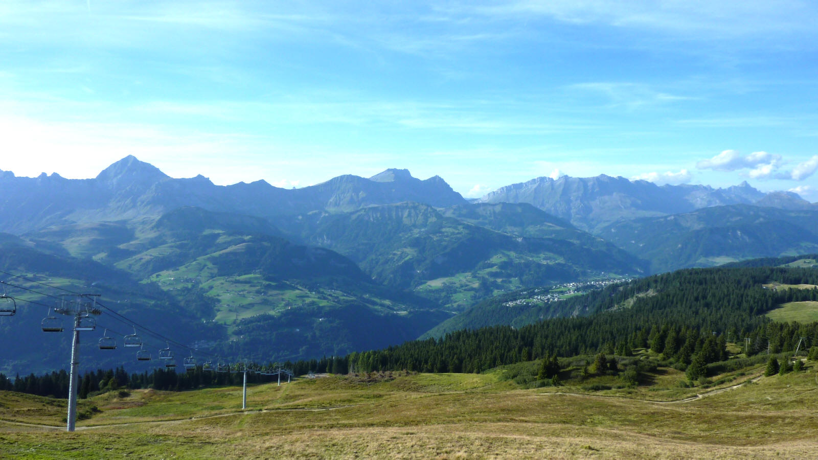 panorama ''nord-ouest'' du col de Bisanne (1950m) le 4 septembre 2010, au loin la chaîne des Aravis