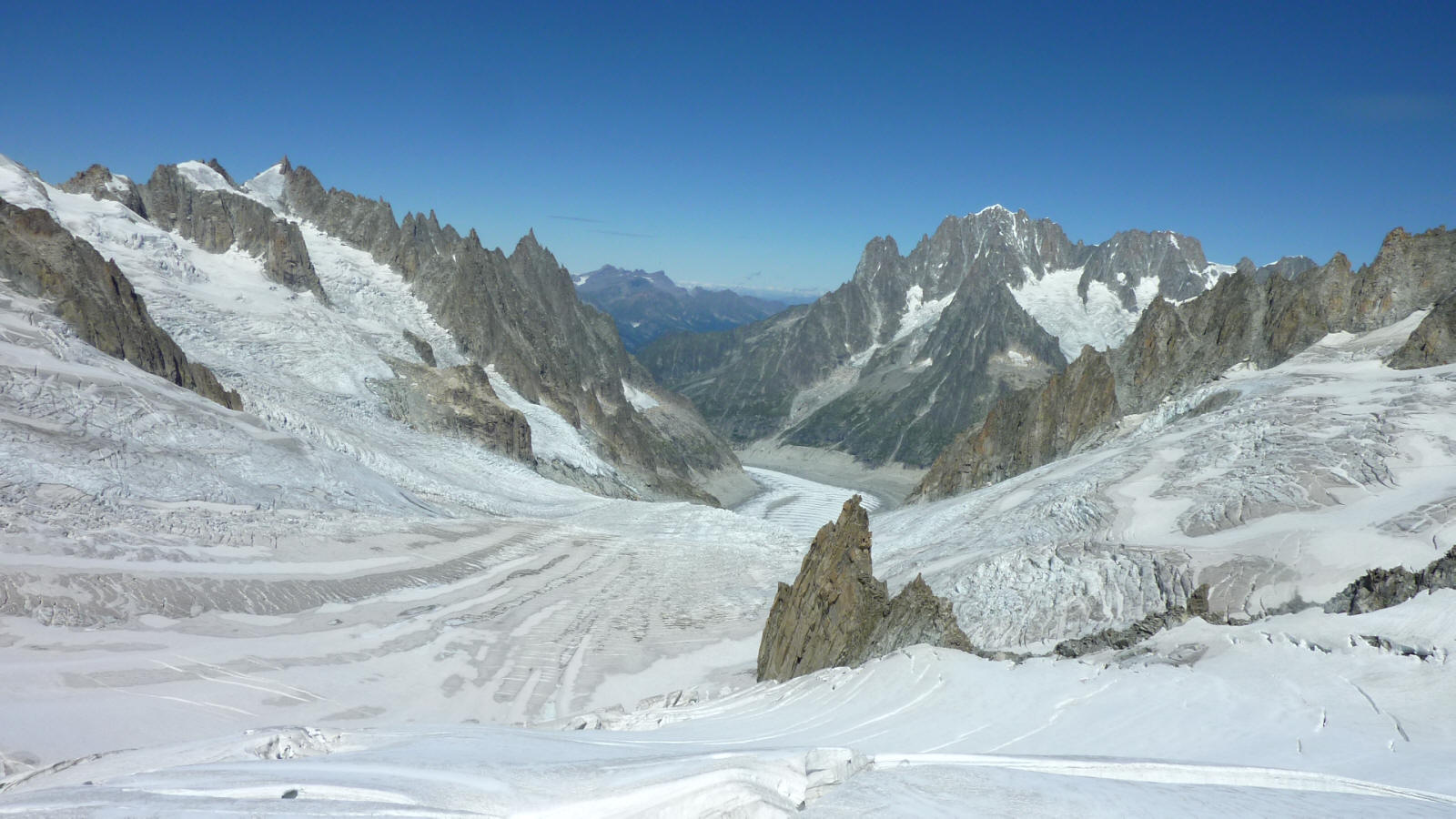 vallée blanche                                                              la descente du Glacier du Géant et  de la Vallée Blanche vers la Vallée de Chamonix    (utilisez l'ascenseur vertical)