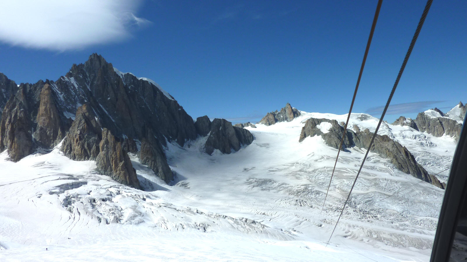 Glacier du Géant en partant de la Pointe d'Helbronner, au loin l'Aiguille du Midi....