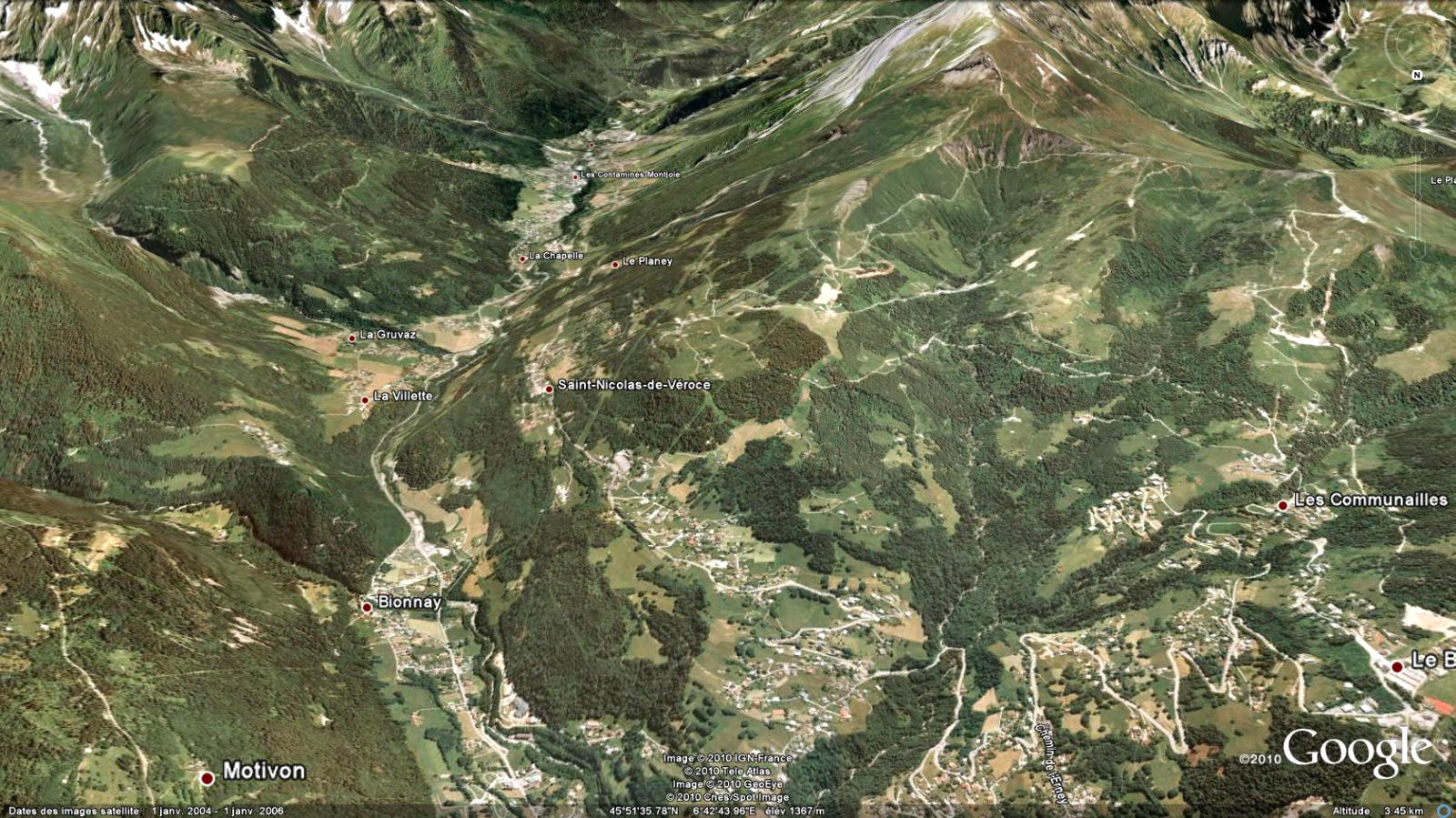 st nicolas de veroce                                                                       Saint Nicolas de Véroce (1150m) et le Plan de la Croix (1448m)                            (copyright Google Earth)